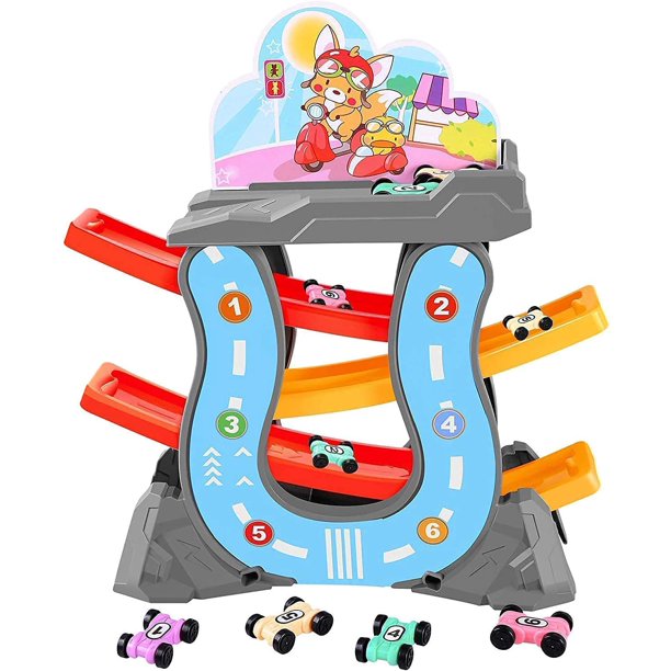 Rabing Toddler Toys Car Ramp Race Tracks Playsets With 6 Mini Cars Gliding Track Set Holiday Toys For Boys And Girls Aged 18 Months Walmart Com