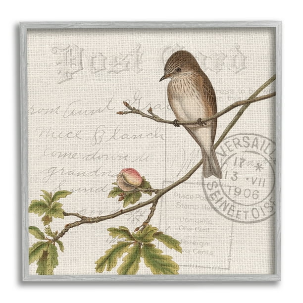Stupell Industries Song Bird Tree Branch Vintage Postal Card Pattern 12 X 12 Design By Kim Allen Walmart Com