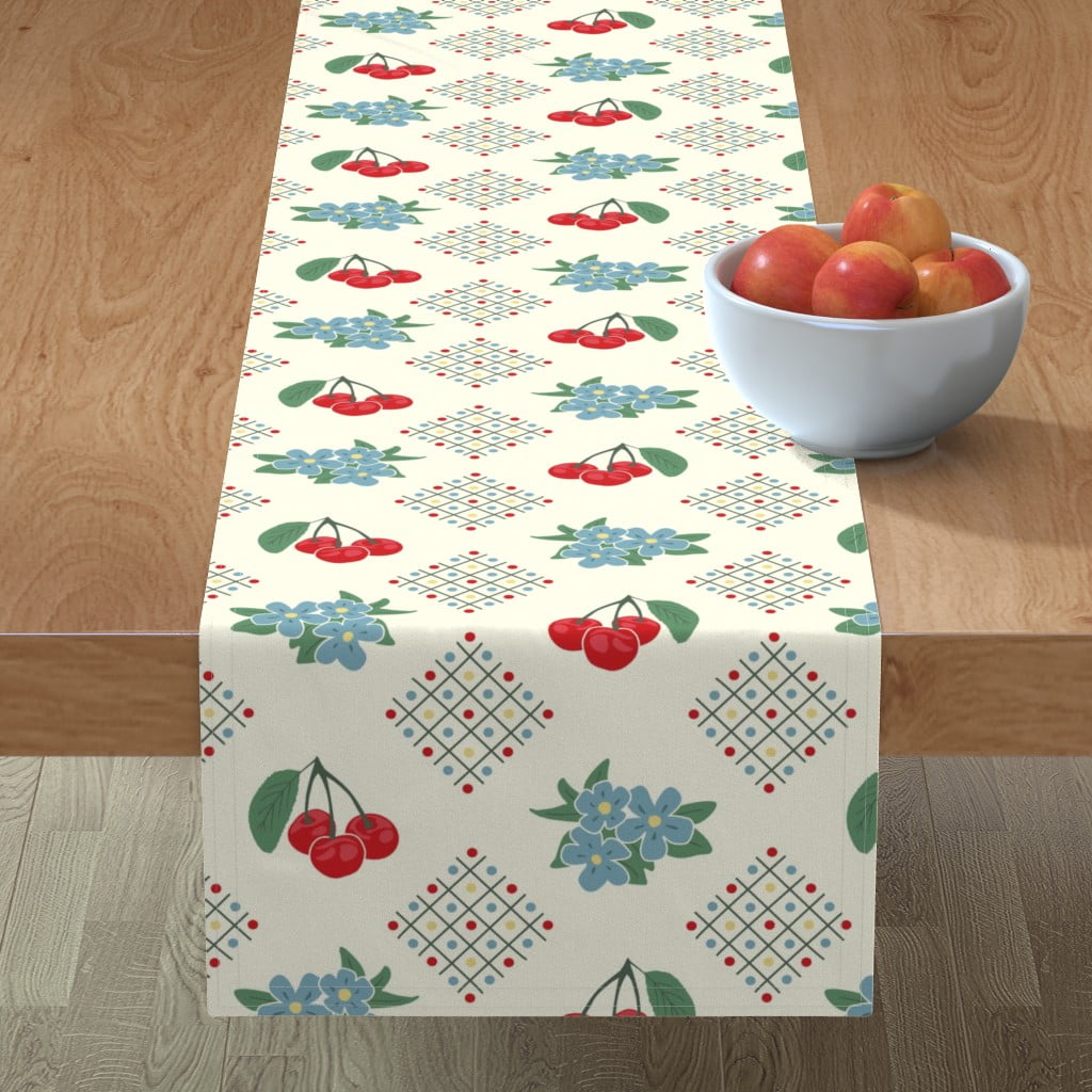 Cotton Sateen Table Runner 72 1940s Style Kitchen Cherry Large Print Flowers Retro Floral Vintage Decor Geometric Print Custom Table Linens By Spoonflower Walmart Com