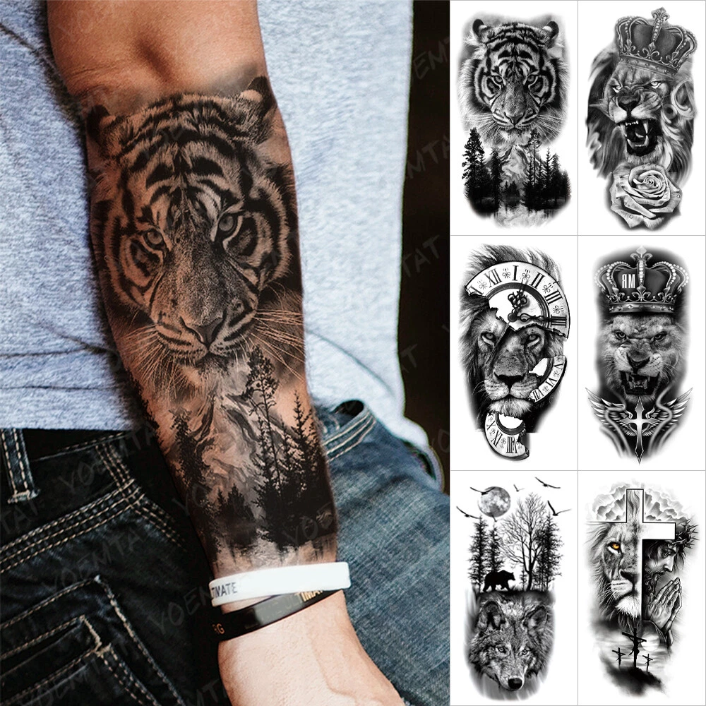6pcs Waterproof Temporary Tattoo Stickers Animal Wolf Lion Tiger Rose Men Women Ebay
